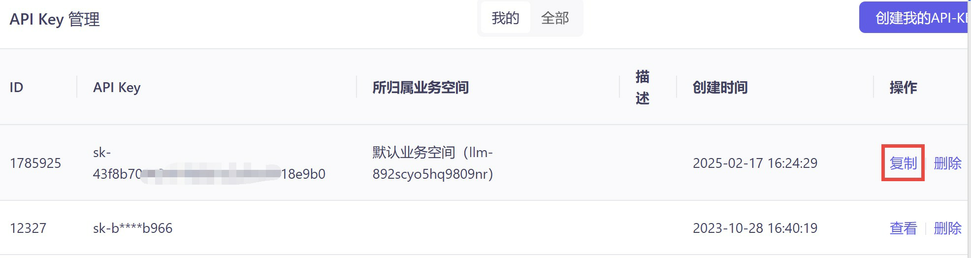我们已经在上⾯的【获取API Key】的操作时已经成功获取了API Key,那么这时候就可以在 OpenAILike API Key中点击修改符号并输⼊获取的API Key。