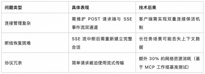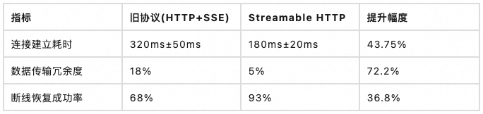 - Streamable HTTP 单端点设计简化架构,JSON-RPC 批处理减少网络开销。