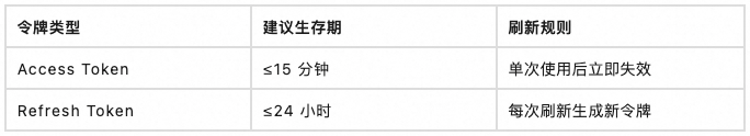 - 禁止明文存储:采用操作系统安全存储区或 HSM 加密