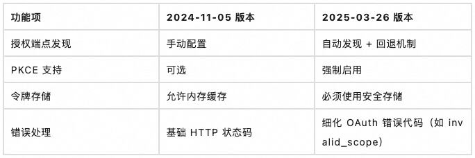 2025-03-26 版本与 2024-11-05 版本的主要更新对比表格: