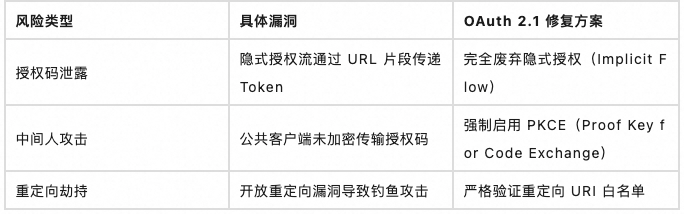 旧版 OAuth 2.0 长期存在三大致命隐患: