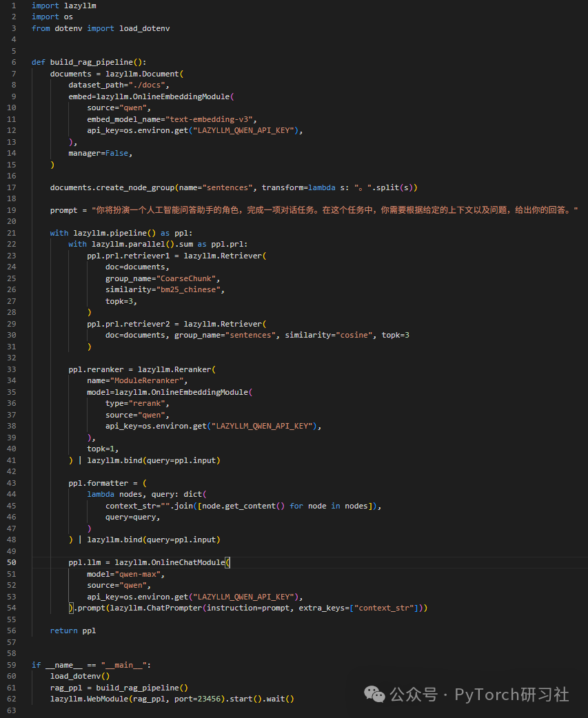 直到我昨天看到了 LazyLLM,我用不到 10 行 Python 代码实现了一个带有两个并行检索方法和一个重排方法的 RAG 系统。