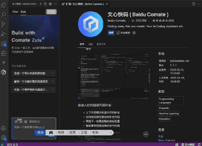 Zulu 是文心快码 Baidu Comate 编码辅助工具,中的智能体,可以进行代码问答等交互,感兴趣的读者可以查看源创会上关于 Zulu 的演讲:AI 编码工具也有自己的智能体了
