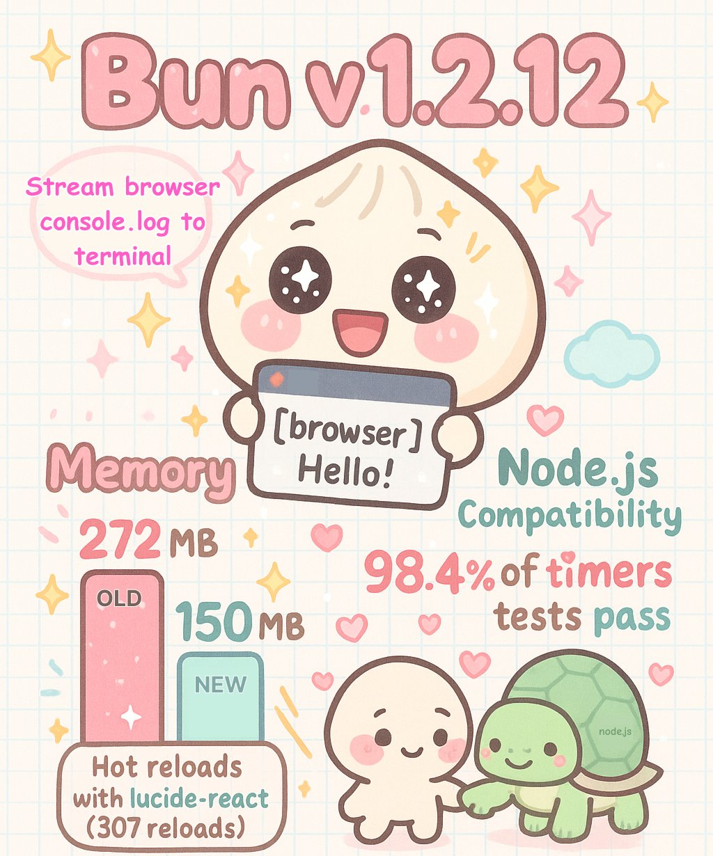 Bun v1.2.12 发布:改进 Node.js 兼容性、降低内存占用