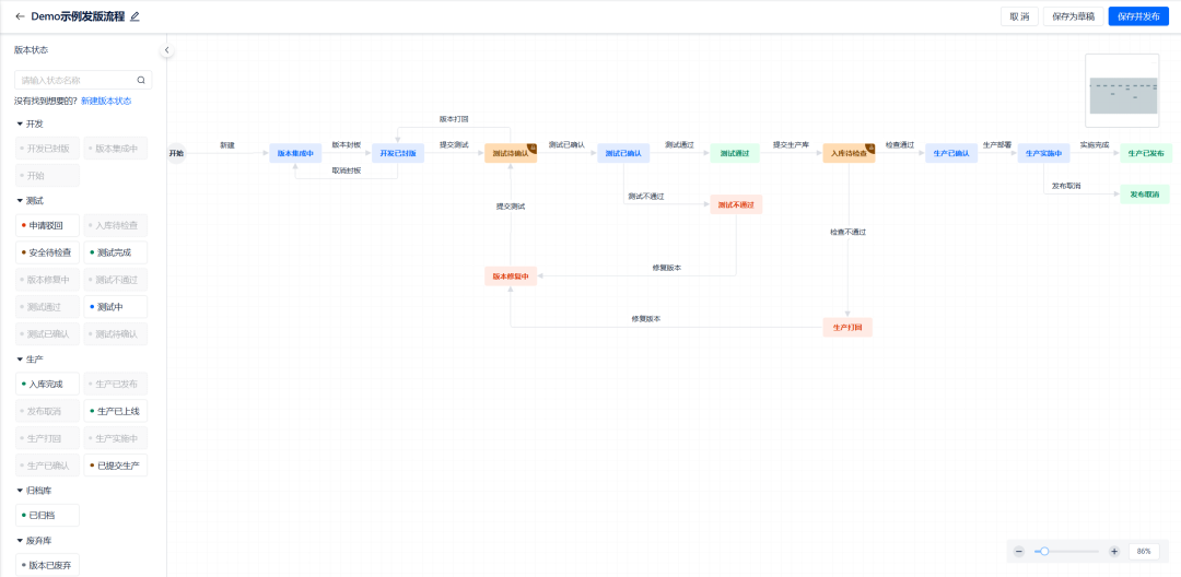 版本状态变更可自动触发部署与测试流程,减少人工介入,降低测试与运维成本。