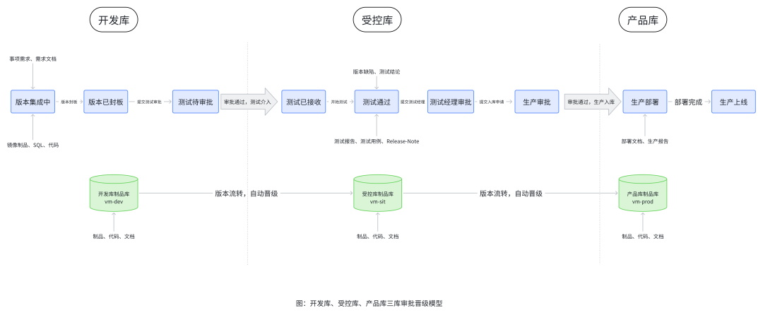产品库:软件生命周期内,存放已通过终验且可进行交付的软件配置项合集,是公司的核心资产,一般由生产负责人进行维护。