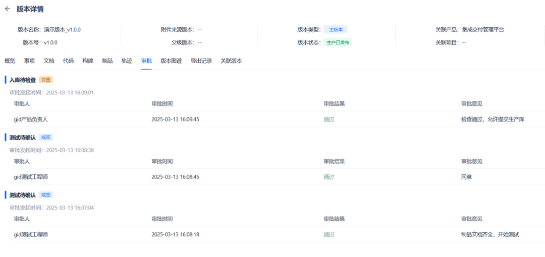 同时,版本出入库的审批记录和操作日志都会在版本中进行记录,保证版本的安全性、可靠性和可追溯性。