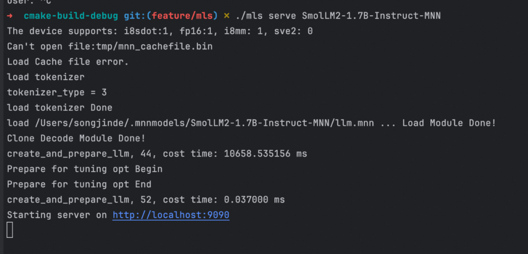 modelscope 用户可以下载后指定 config 文件运行,例如./mls serve -c /Users/songjinde/.cache/modelscope/hub/MNN/DeepSeek-R1-1.5B-Qwen-MNN/config.json