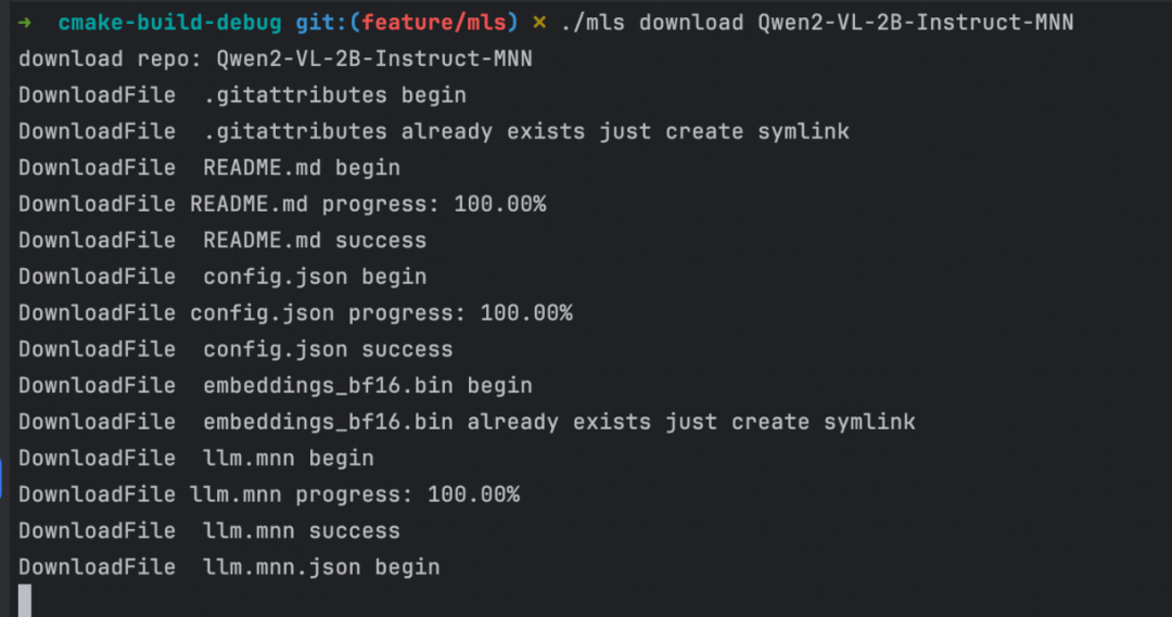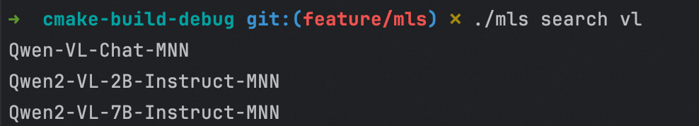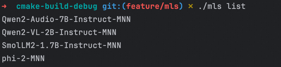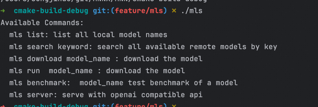 编译完成后,可以看到 mls 产物,通过 mls 命令可以执行下载、benchmark 测试、启动rest服务等功能。