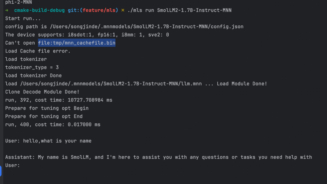 modelscope 用户可以下载后指定 config 文件运行,例如./mls run -c /Users/songjinde/.cache/modelscope/hub/MNN/DeepSeek-R1-1.5B-Qwen-MNN/config.json