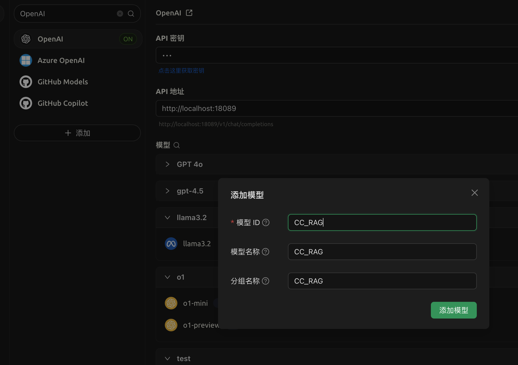 这里可以通过可视化工具 CherryStudio 进行交互测试。CherryStudio 兼容 OpenAI 接口标准,适合用于接口联调、上下文调试和模型效果验证。