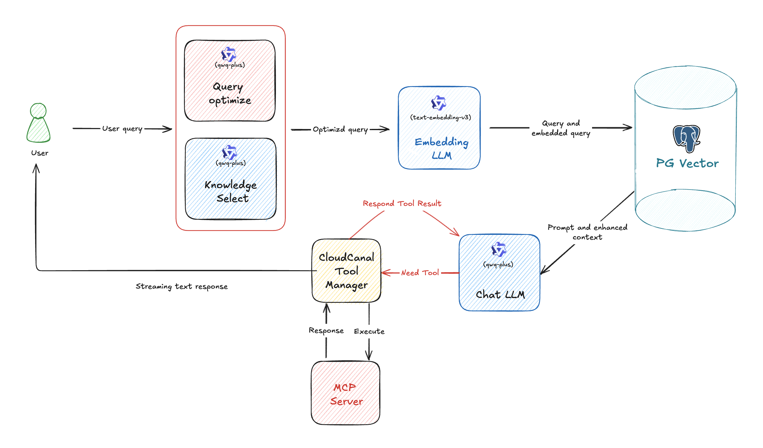 近期 CloudCanal 支持了构建 RagApi 服务,基于标准的 RAG 架构,同时引入了 MCP 协议,实现了向量化、检索、问答生成与工具链调用的端到端闭环。