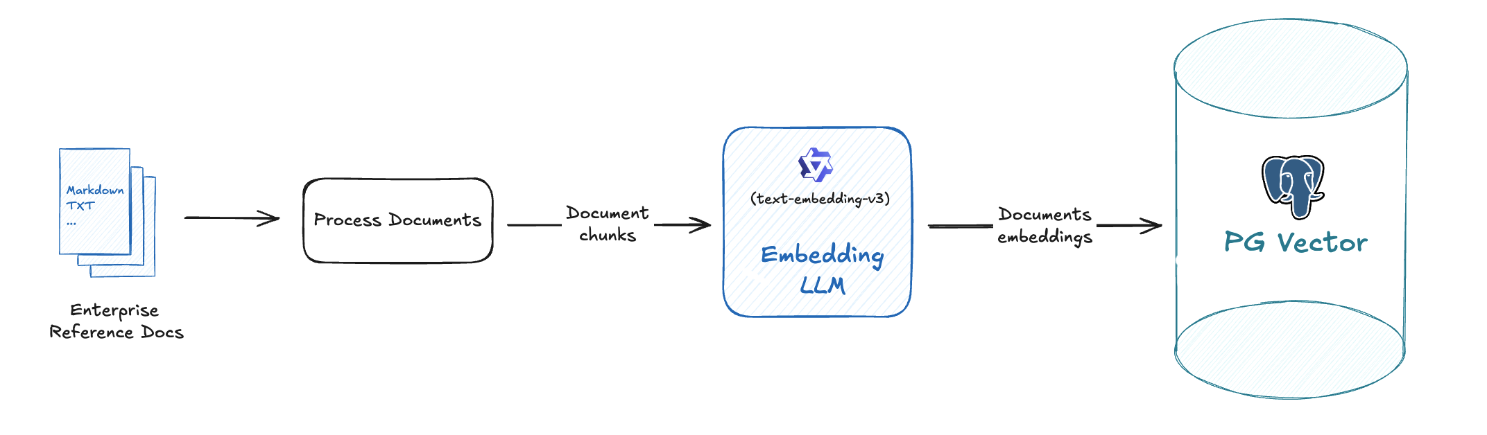 CloudCanal 自动处理原始文档并生成向量嵌入,写入 pgvector 扩展的向量字段中(如 __vector 列)。