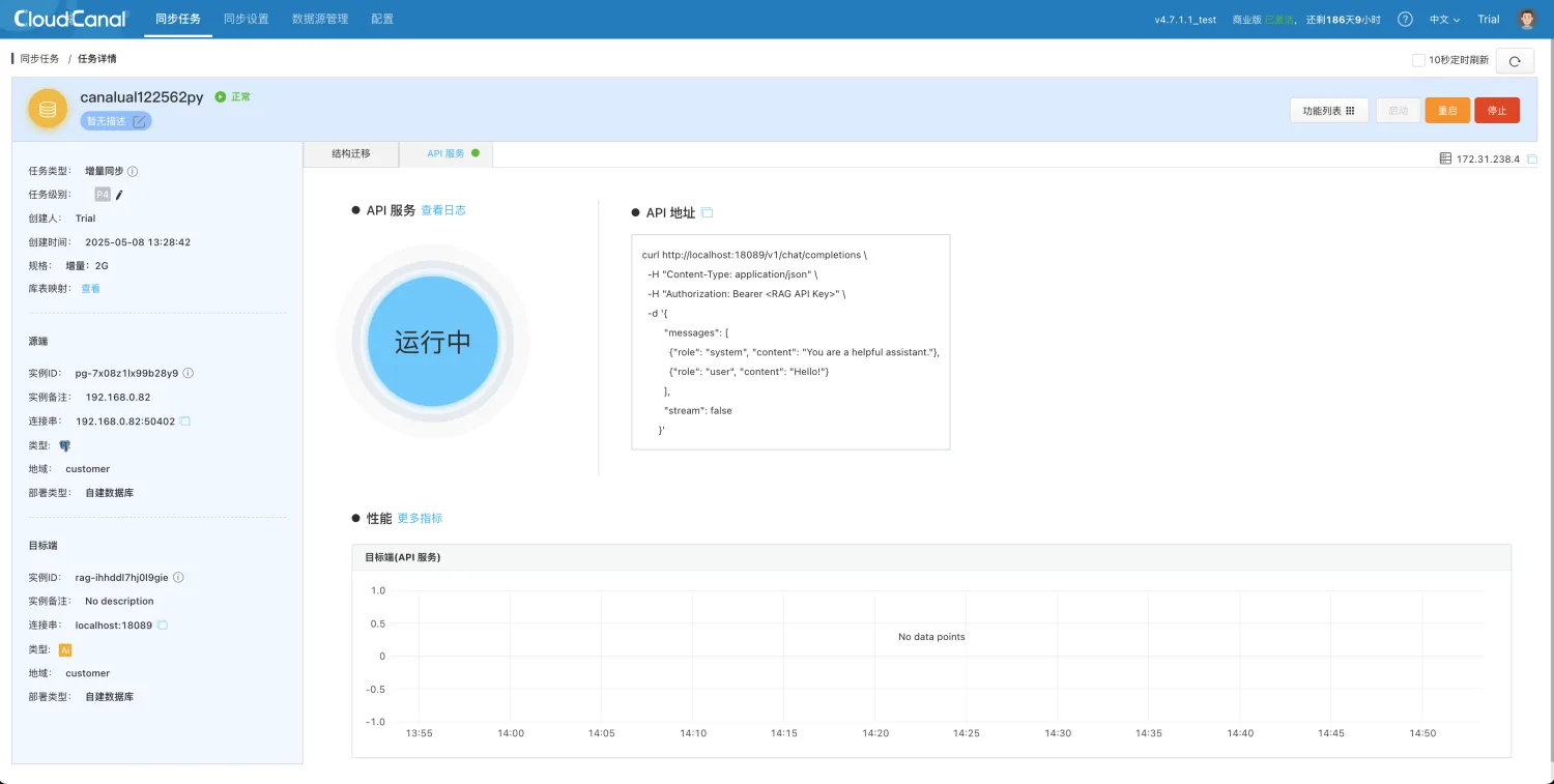 - API 密钥:填写在 CloudCanal 中配置的 RagApi API Key