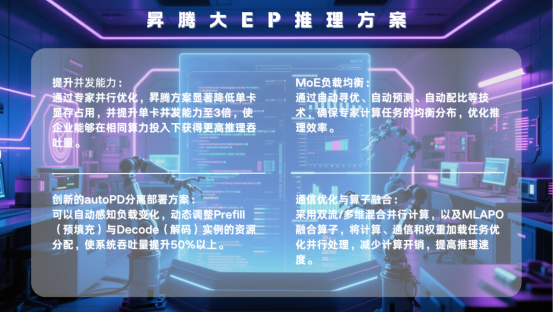 二是MoE负载均衡。通过自动寻优、自动预测、自动配比等技术,确保专家计算任务的均衡分布,优化推理效率。