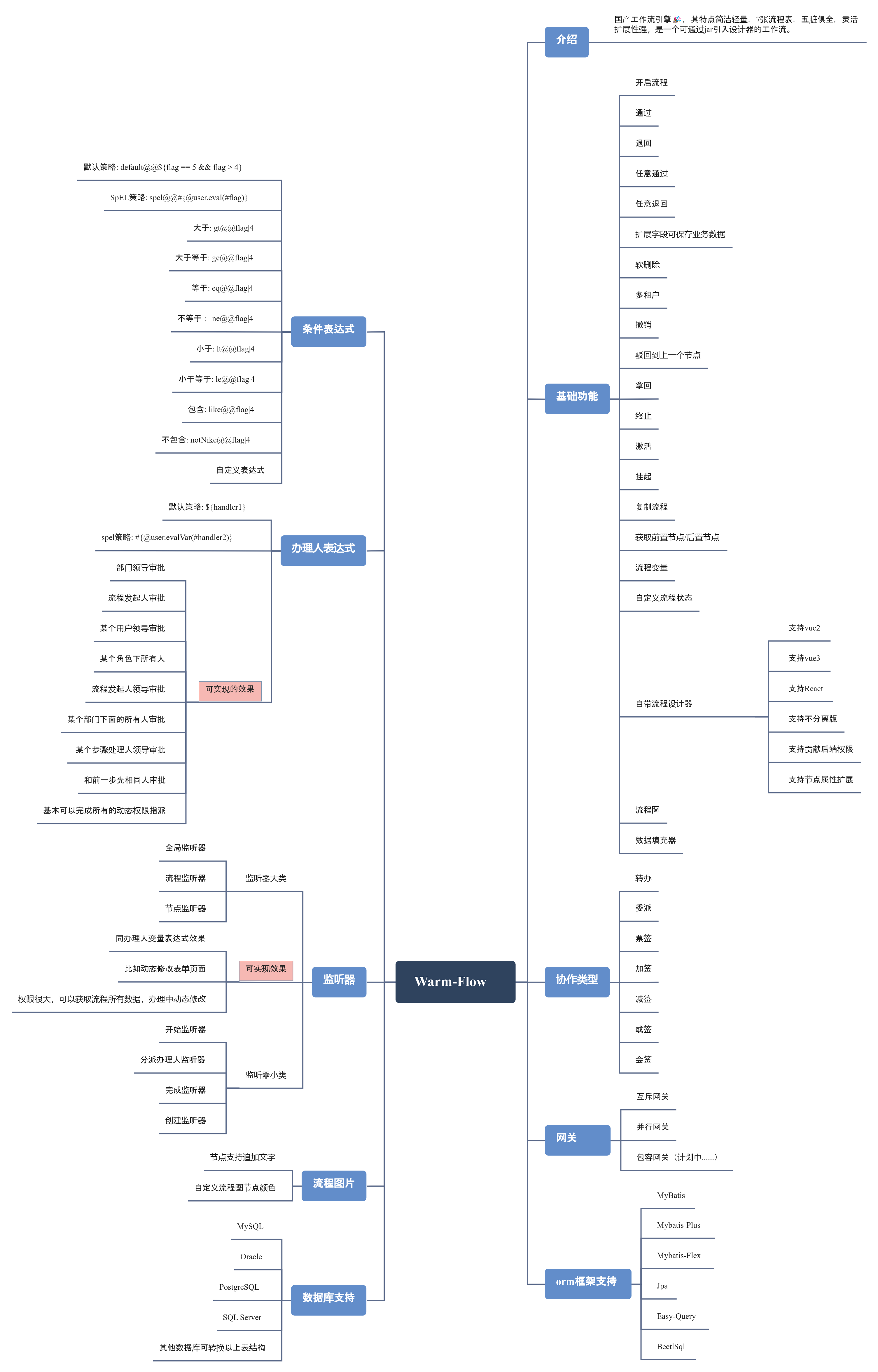- 支持常见审批功能、监听器与流程变量、条件表达式、办理人表达式