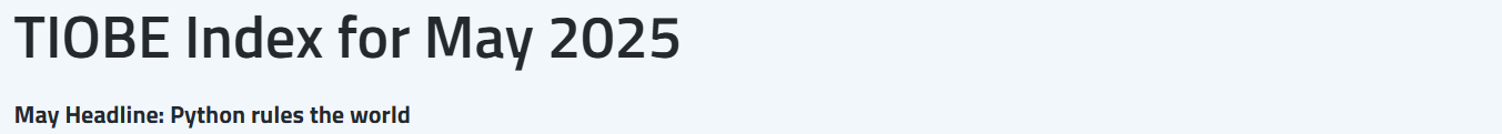 TIOBE 公布了 2025 年 5 月的编程语言排行榜。