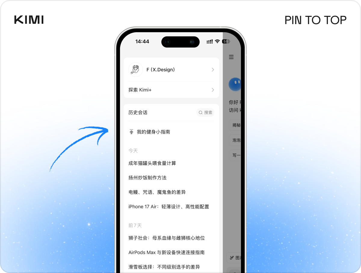 导航栏也做了改版,支持将常用会话置顶,方便回到反复查看的内容,或继续那些还没聊完的想法。