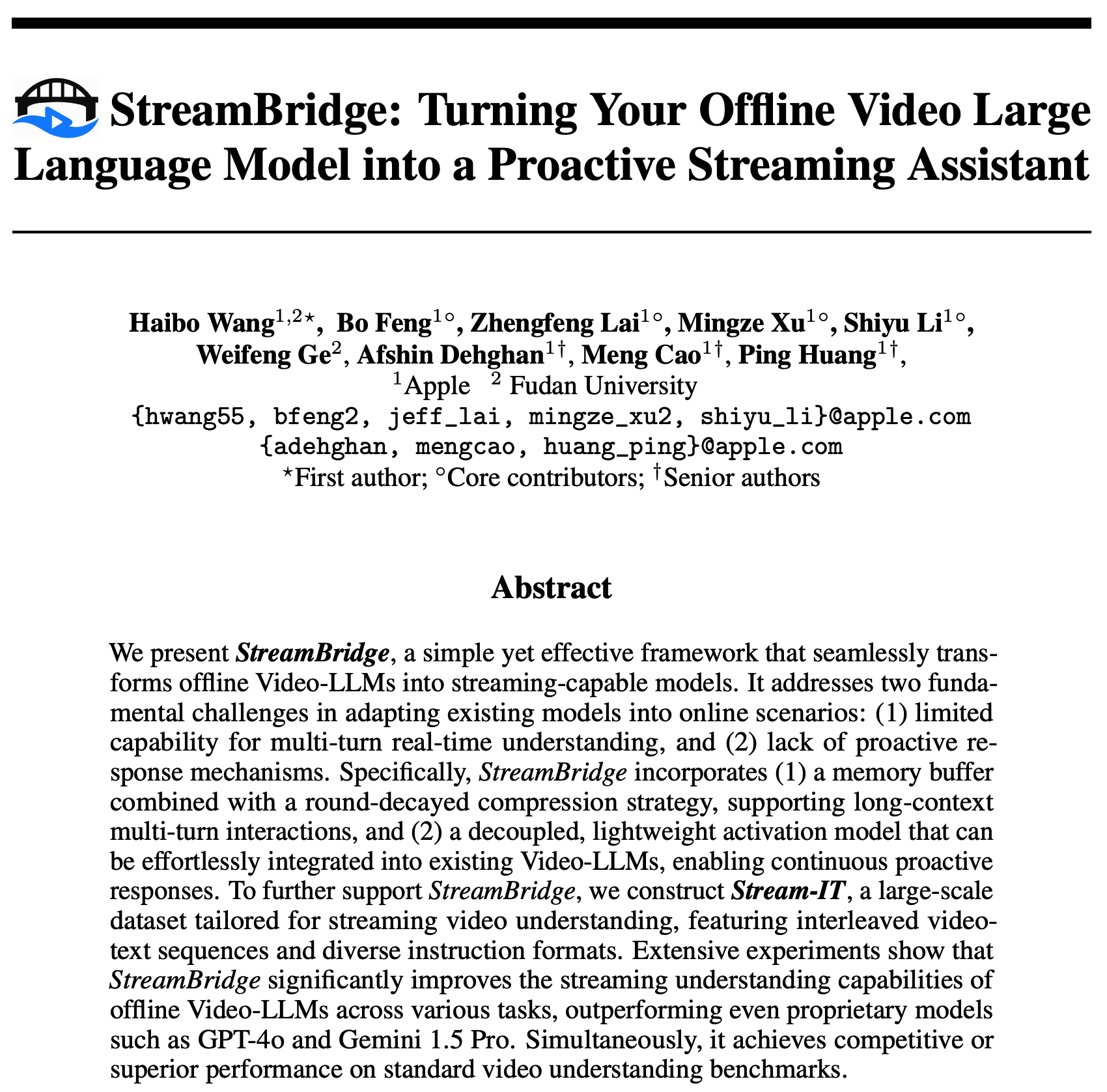 苹果联合复旦大学提出端侧视频大语言模型框架 StreamBridge