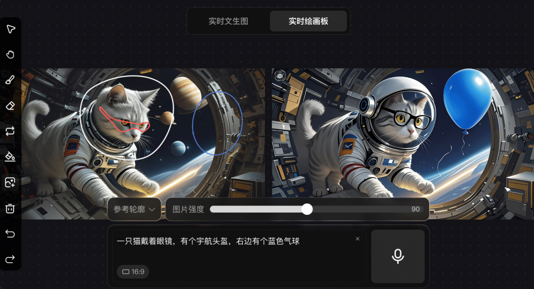 本次模型升级还带来了发布了实时绘画板功能,基于模型的实时生图能力,用户在绘制线稿或调整参数时,预览区同步生成上色效果,突破了传统“绘制-等待-修改”的线性流程,可助力专业设计师的创作。