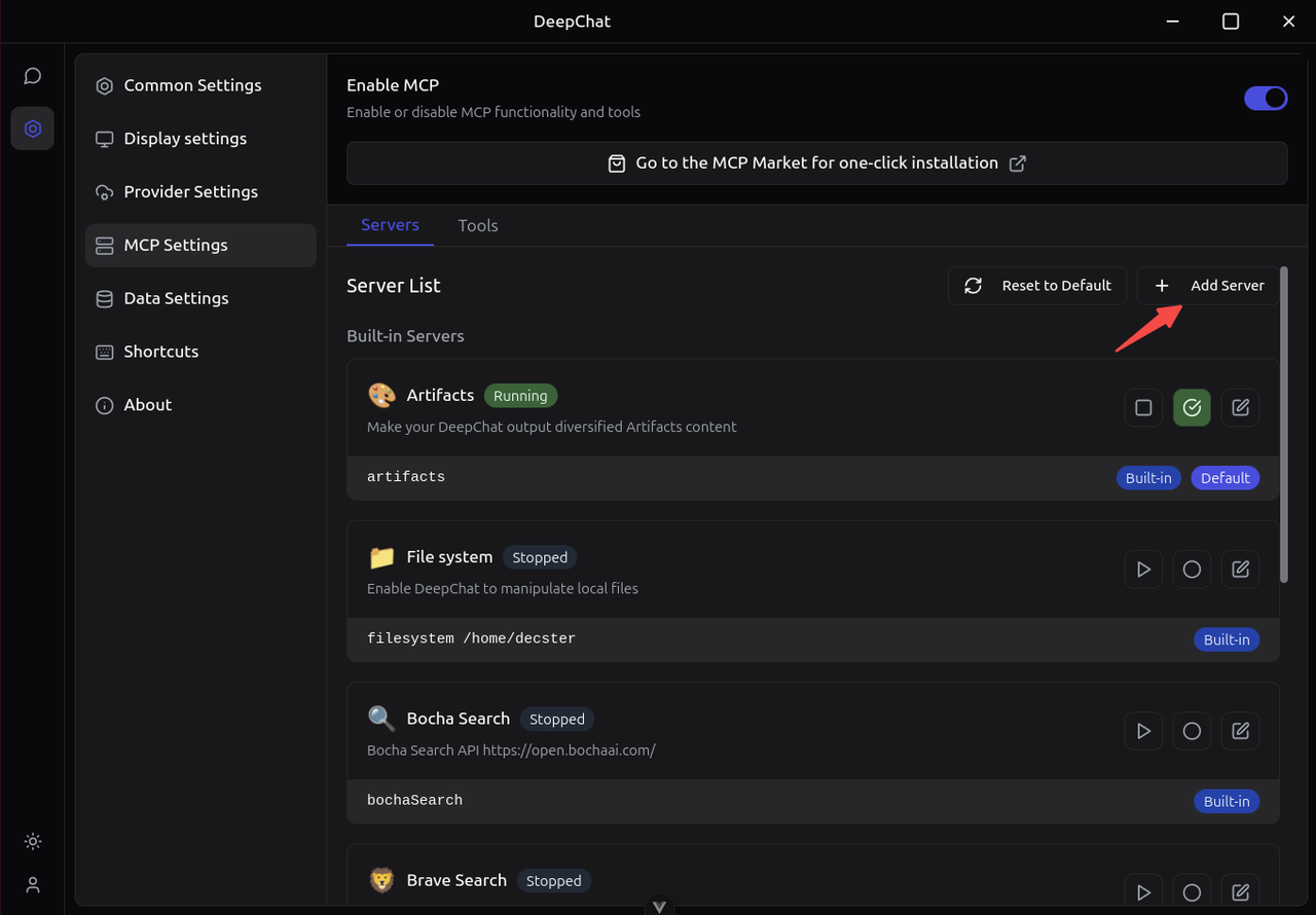 补充说明:在本次 Demo 中,我们使用的是 DeepChat 作为 MCP Client。除此之外,市面上还有如 Claude Desktop、Cline 等主流客户端,用户可根据个人偏好进行配置。需要注意的是,由于我们期望返回结果包含表格和图片,部分客户端可能不支持图片显示,选择时建议将此因素一并考虑。