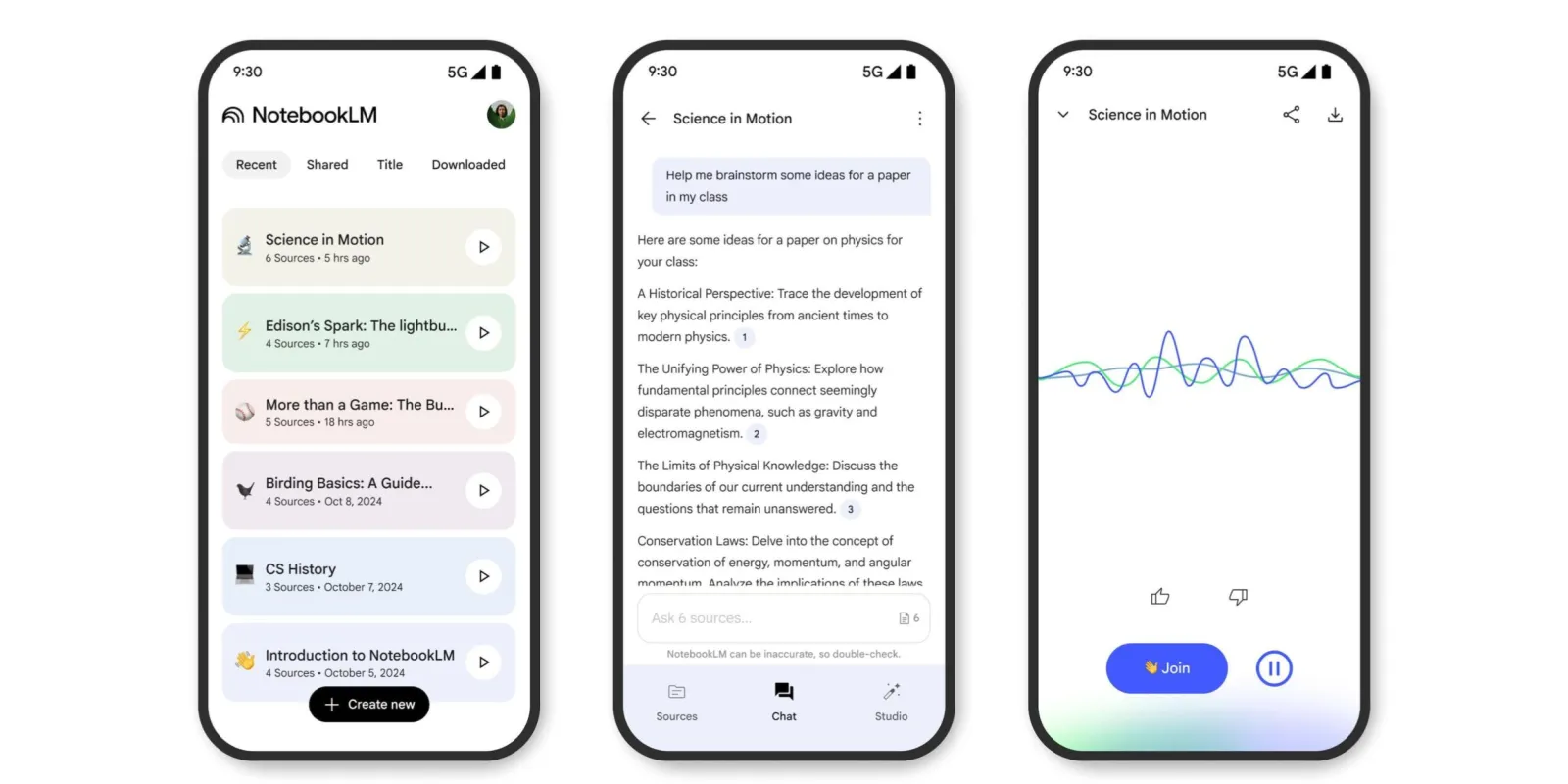 播客风格的体验具有背景播放和离线支持(全屏播放器有很好的光泽),同时您可以“加入”AI主持人(测试版)来询问后续问题。