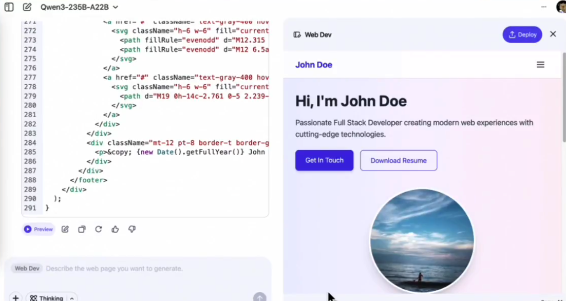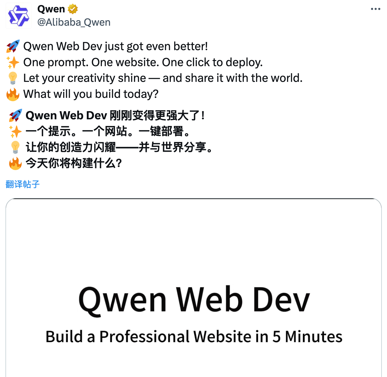 通义千问 QwenChat 升级「网页开发」功能,支持一键部署 AI 生成网页