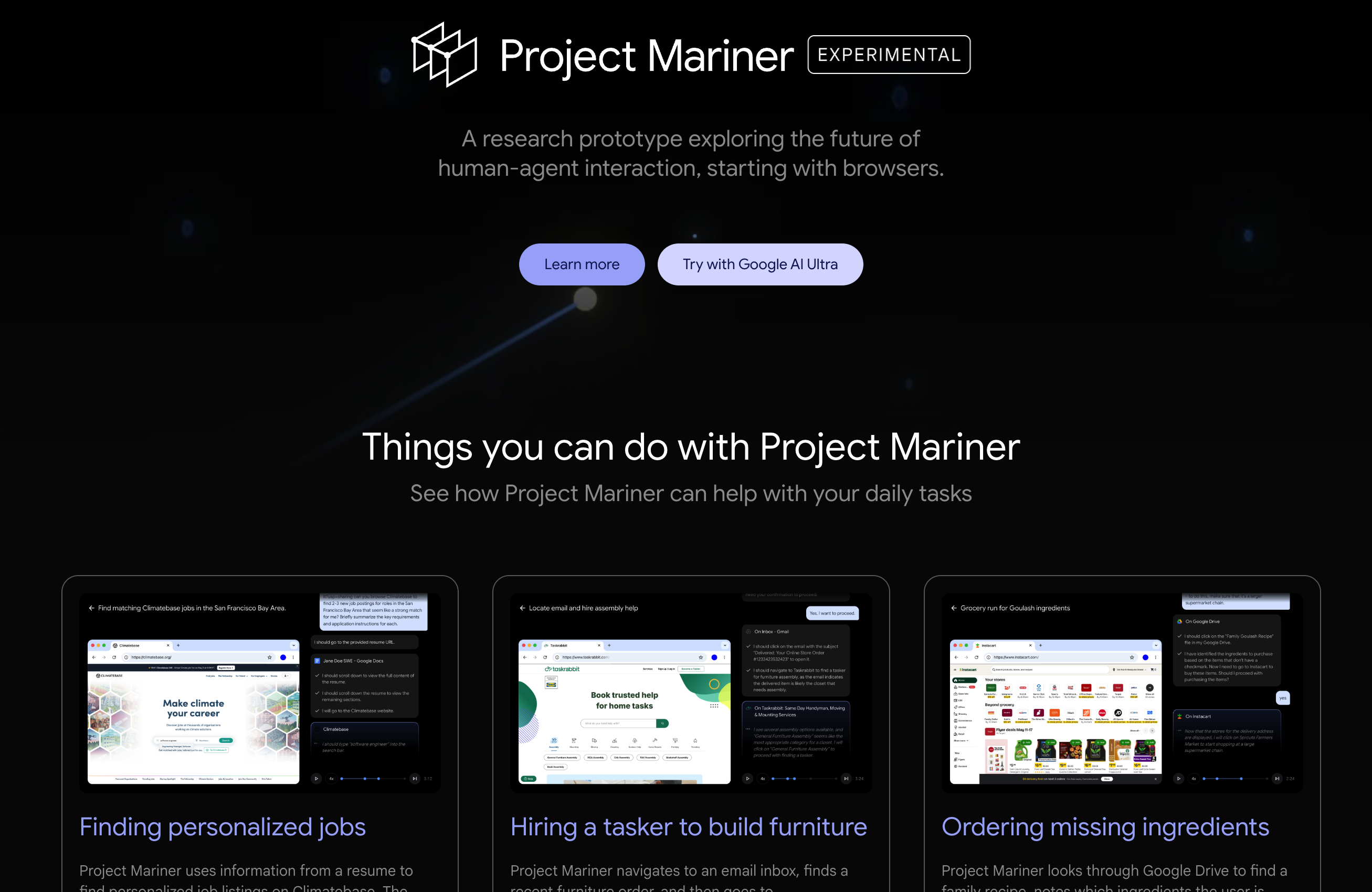 Project Mariner 于 2024 年底首次亮相,旨在通过 AI Agent 改变用户与互联网的互动方式。在项目发布时,谷歌搜索负责人表示,他们将 Mariner 视为用户体验根本性转变的一部分,届时人们将把更多任务委托给 AI Agent,而不是自己访问网站并完成这些任务。