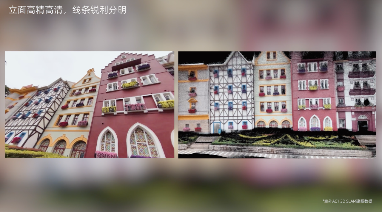 室外 AC1 拍摄画面及建图数据,图片来自速腾聚创官网视频截图