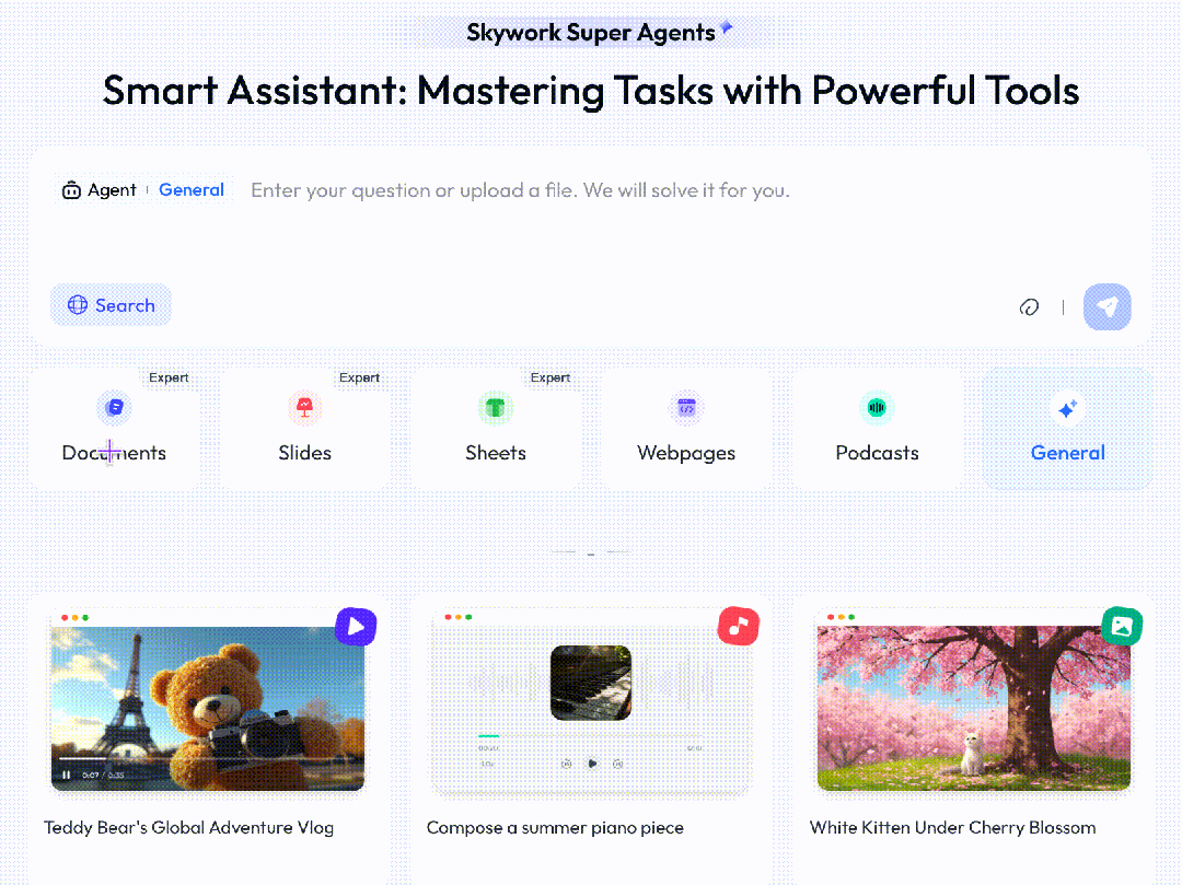 Skywork Super Agents 提供了5个专家级agents和1个通用agent,能大大提升专业级内容的生成效率和质量。
