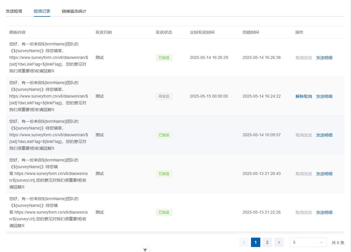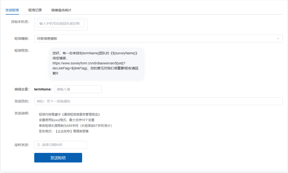 - 新增答卷邀请短信发送模块,支持批量发送、查看发送记录及填写情况;