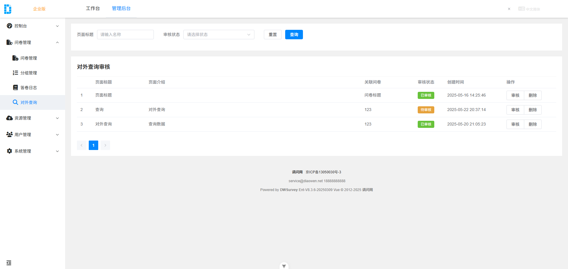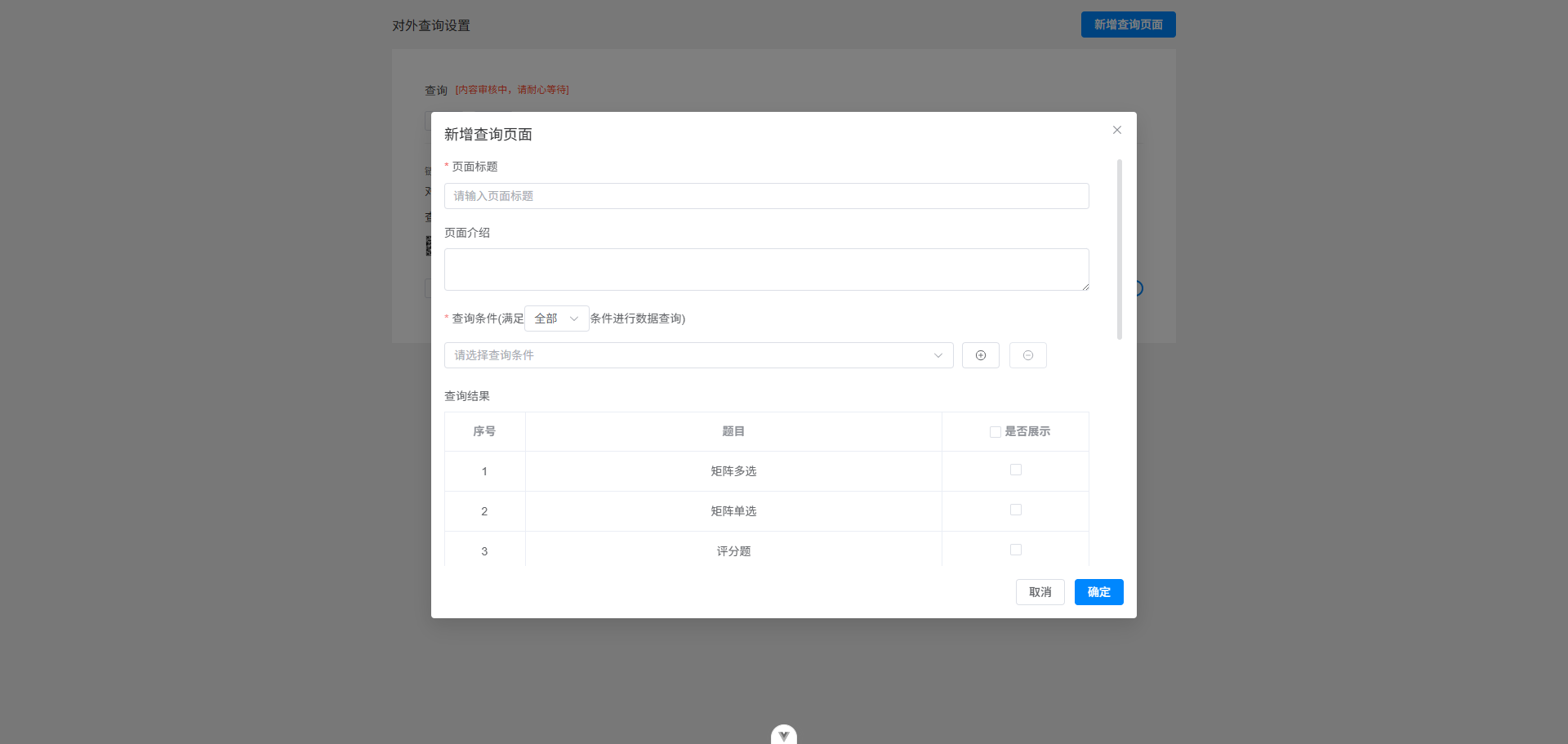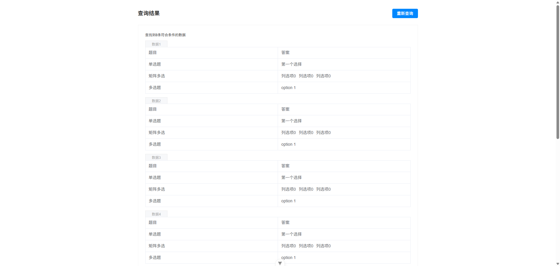 - 新增公共查询模块,可以对问卷配置答卷数据的公共查询页面,同时可以自定义查询条件;