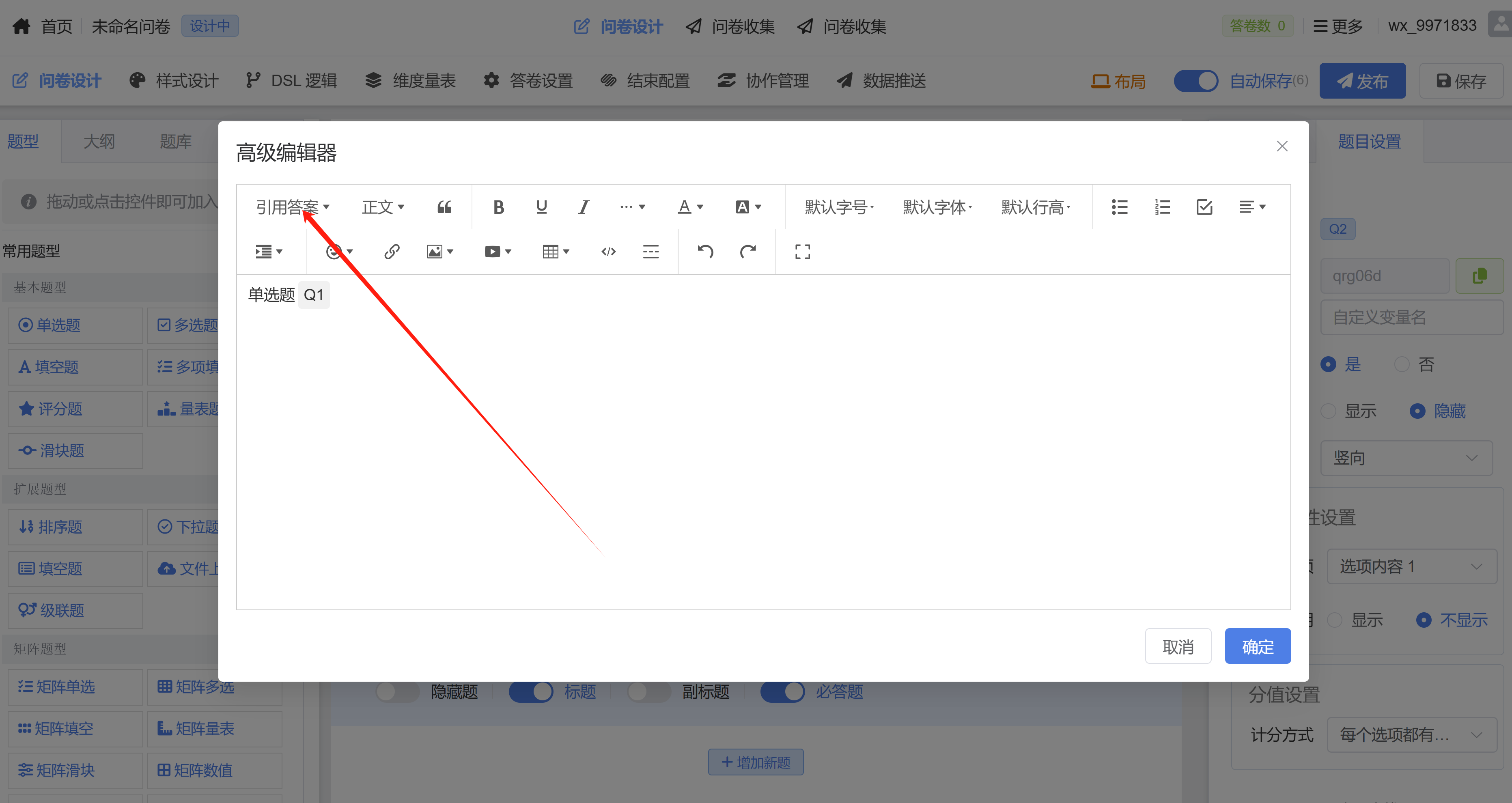 - 新增自定义答案引用功能,设计问卷时可以配置问卷中的题目答案作为后续题的某段文本;