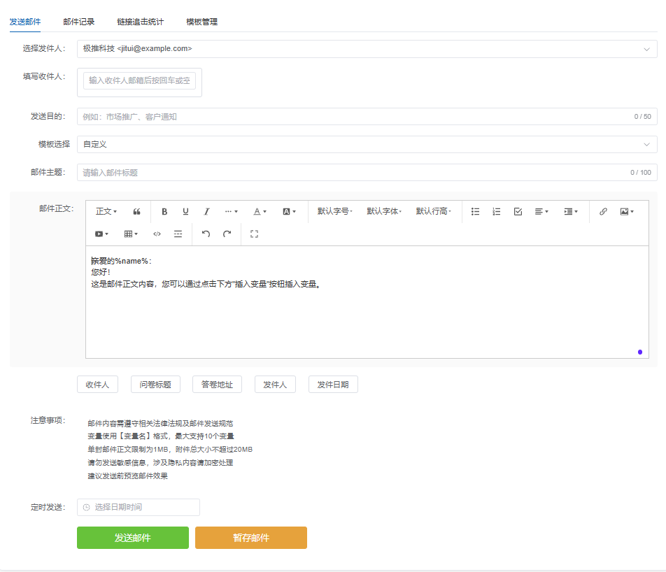 - 新增答卷邀请邮件发送模块,支持批量发送、查看发送记录及填写情况;