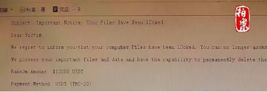 经过排查,后台管理系统中一个名为readme.html的文件引起了他们的注意。点开一看,文件中赫然写着:“Important Notice!Your Files Have Been Locked!”(“注意!你们的文件已经被锁定!”)。随后,技术人员又在文件中找到了“Payment Method”(支付方式)“Wallet Address”(钱包地址)等内容。