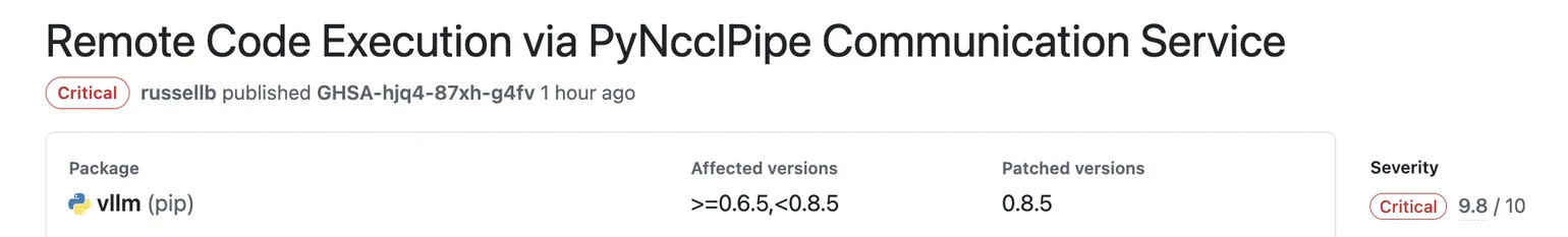 开源大模型推理框架 vLLM 被曝高危远程代码执行漏洞(已修复)