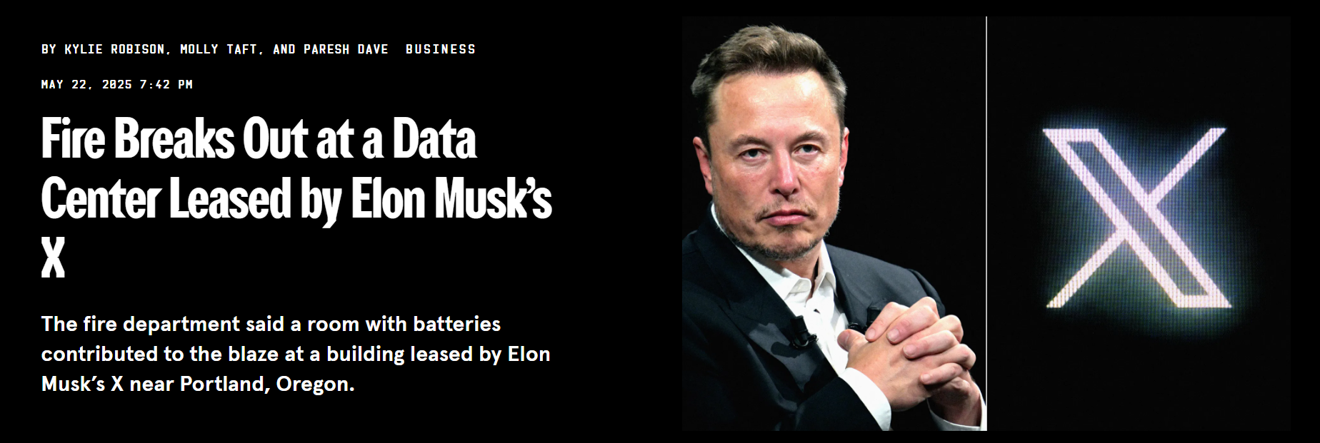 多位消息人士向 WIRED 透露,埃隆-马斯克(Elon Musk)的 X 公司在俄勒冈州希尔斯伯勒(Hillsboro)租用的一个数据中心于当地时间周四上午发生火灾。