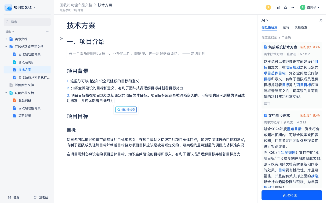 具备强大的智能化文档搜索功能,能快速精准地定位到所需的知识文档,无论是具体的技术文档、项目流程记录还是经验总结分享,都能及时呈现。即使文档数量庞大、种类繁多,研发人员也无需在海量的信息中苦苦查找,大大节省了时间和精力。