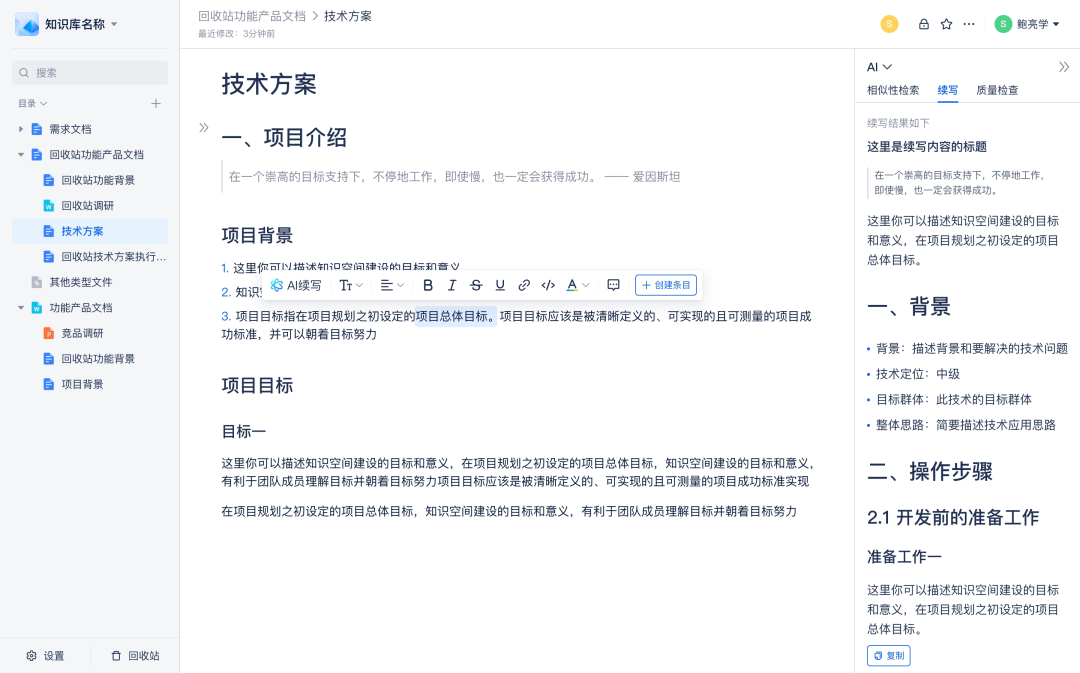 在未来,将知识管理与 AI 结合,AI 可以根据关键领域软件研发中的历史数据、代码信息和业务规则,自动生成相关的文档和知识内容。例如,通过机器学习算法分析代码结构和注释,自动生成详细的技术文档,包括代码功能说明、接口文档等。这不仅能大大节省人工编写文档的时间和精力,还能保证文档的准确性和一致性,提高知识创作的效率。