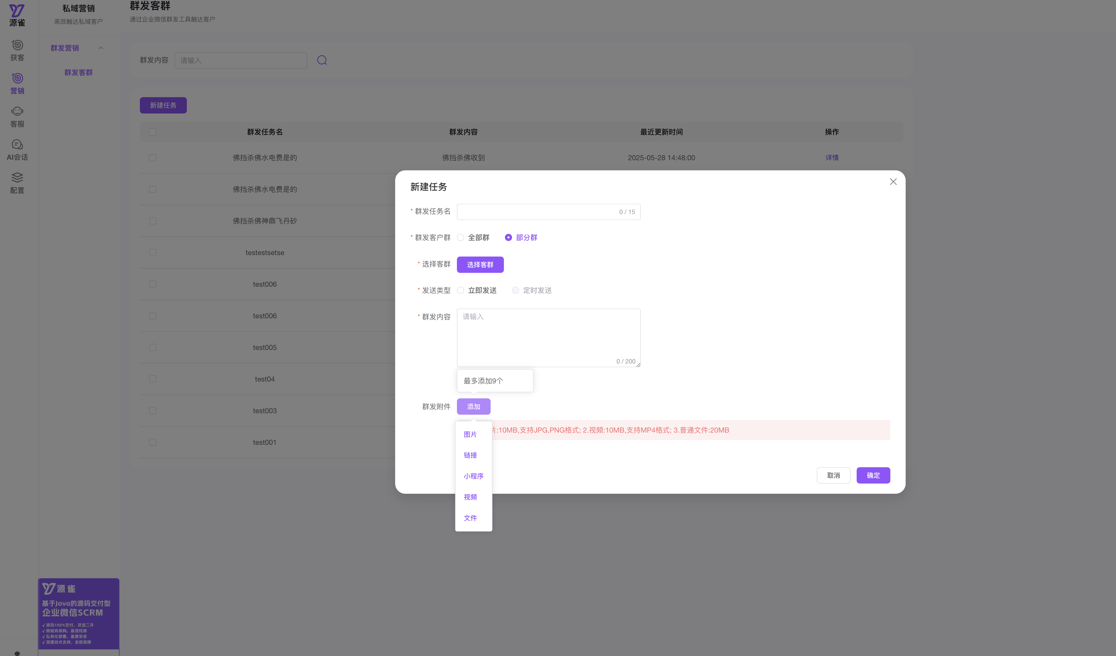 源雀 Scrm AI 开源版+客群群发,功能更新