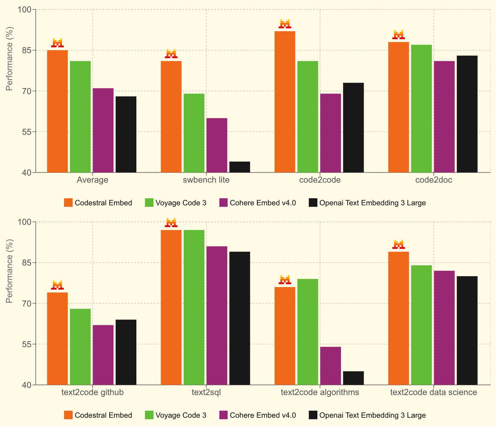 Mistral AI 发布了其首款专门针对代码的嵌入模型 Codestral Embed。该模型在处理真实世界代码数据的检索用例时表现尤为出色,据称其性能显著优于市场上领先的代码嵌入器,包括 Voyage Code 3、Cohere Embed v4.0 以及 OpenAI 的大型嵌入模型。