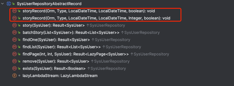 •声明 ORMComparisonRepository接口 继承 ORMRepository 下游由不同ORM实现•声明 SysUserRepository 接口 继承 ORMRepository 用于循环调用不同orm实现方法执行方法测试产生测试结果•声明抽象类 SysUserRepositoryAbstractRecord 继承 ORMComparisonRepository 并且提供对应的框架执行结果存储