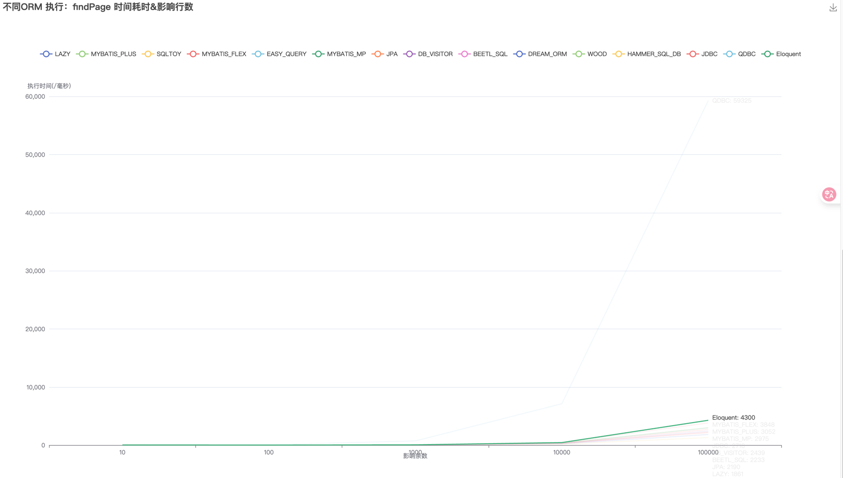 •一万条数据以内 几款ORM均保持在600毫秒内•十万数据时,处理时间由快到慢依次是:•四千毫秒以内:sqltoy、dream_rom、lazy、easy-query、beetlSql、jpa、db_visitor•四千毫秒以上:原生jdbc、mybatis-mp、mybatis-plus、wood、mybatis-flex、hammer_sql_db、qdbc、gaarason/database-all
