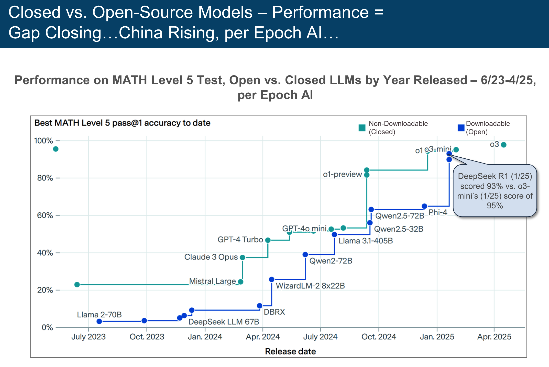 - AI 公司以极低成本匹配竞争对手模型功能的速度也是史无前例的。