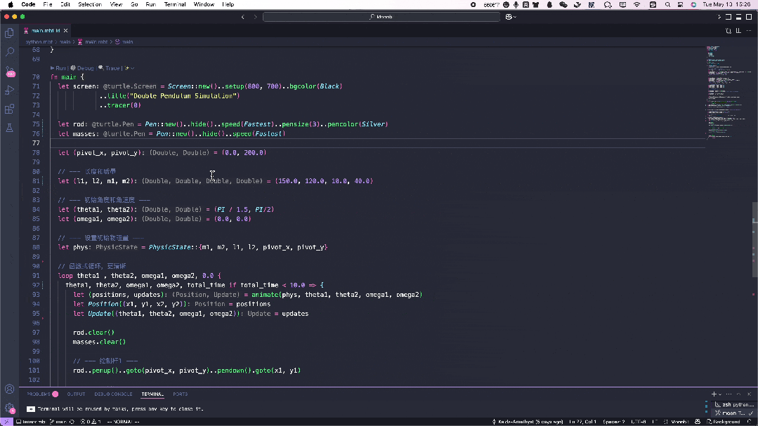 调用 Python turtle 库进行物理系统模拟,底层调用 Python turtle