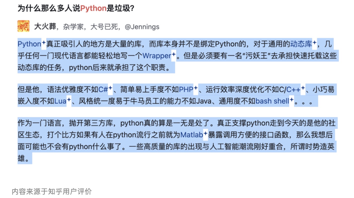 为什么那么多人说 Python 是垃圾?:https://www.zhihu.com/question/596428165/answer/18597063848