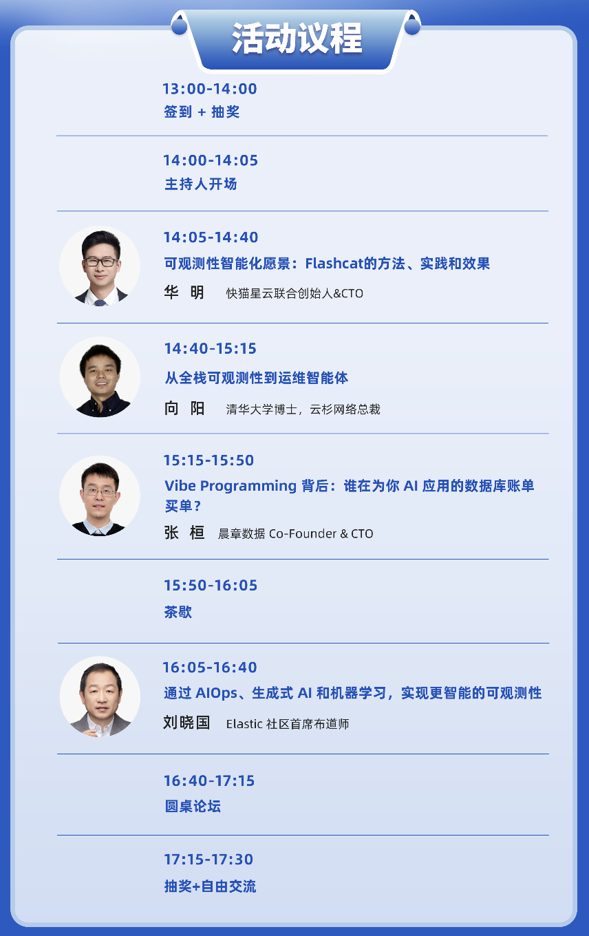 【OSC源创会】本期聚焦AI运维核心技术突破,邀请4位一线技术领军人,深度拆解可观测性智能化、运维智能体构建、数据库成本优化,以及智能分析引擎四大议题。