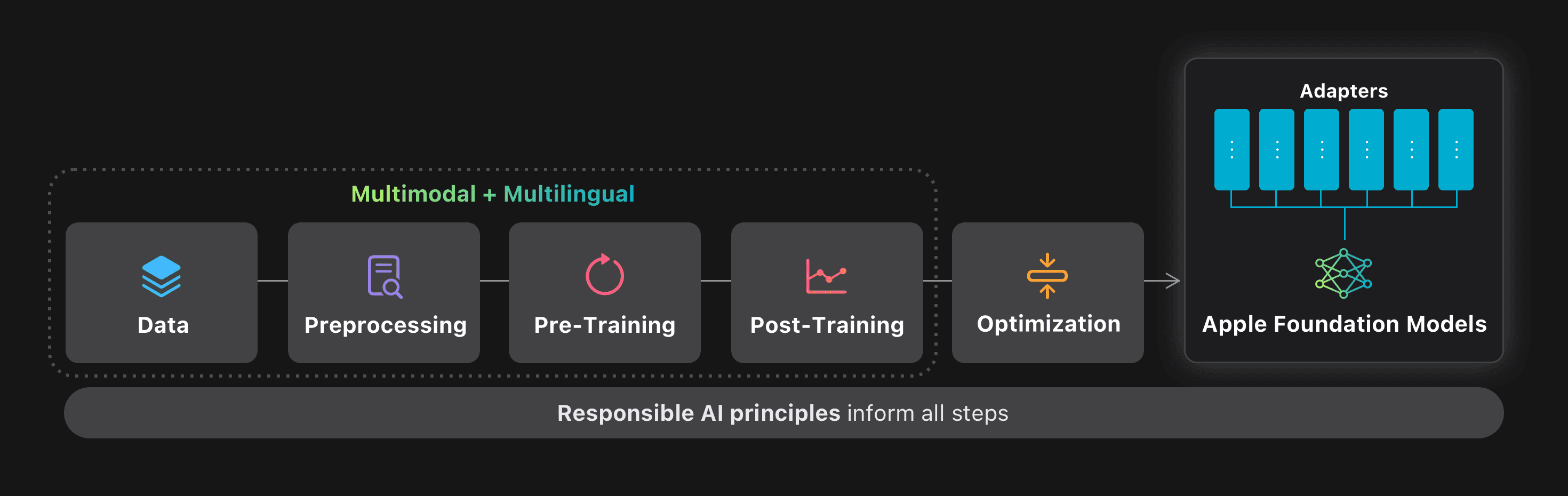 在此概述中,我们详细介绍了我们设计的模型架构、用于训练的数据、所采用的训练配方、用于优化推理的技术,以及与同类模型相比的评估结果。在整个过程中,我们强调了如何在设备和私有云计算上实现速度和效率的提升,同时扩展了能力并提高了质量。最后,在我们持续致力于维护核心价值观的承诺下,我们展示了负责任的人工智能原则如何贯穿整个模型开发过程。