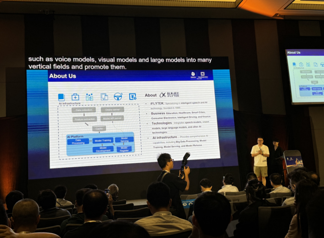 华为云软件工程师 Xuzheng Chang 和科大讯飞平台架构师 Dong Jiang 发表《利用 Volcano 进行扩展模型训练:科大讯飞的 Kubernetes 突破》主题演讲。据介绍,科大讯飞在大规模模型训练中,通过利用 Volcano,将 GPU 利用率提升了 40% 以上,并将故障恢复时间缩短了 70%。