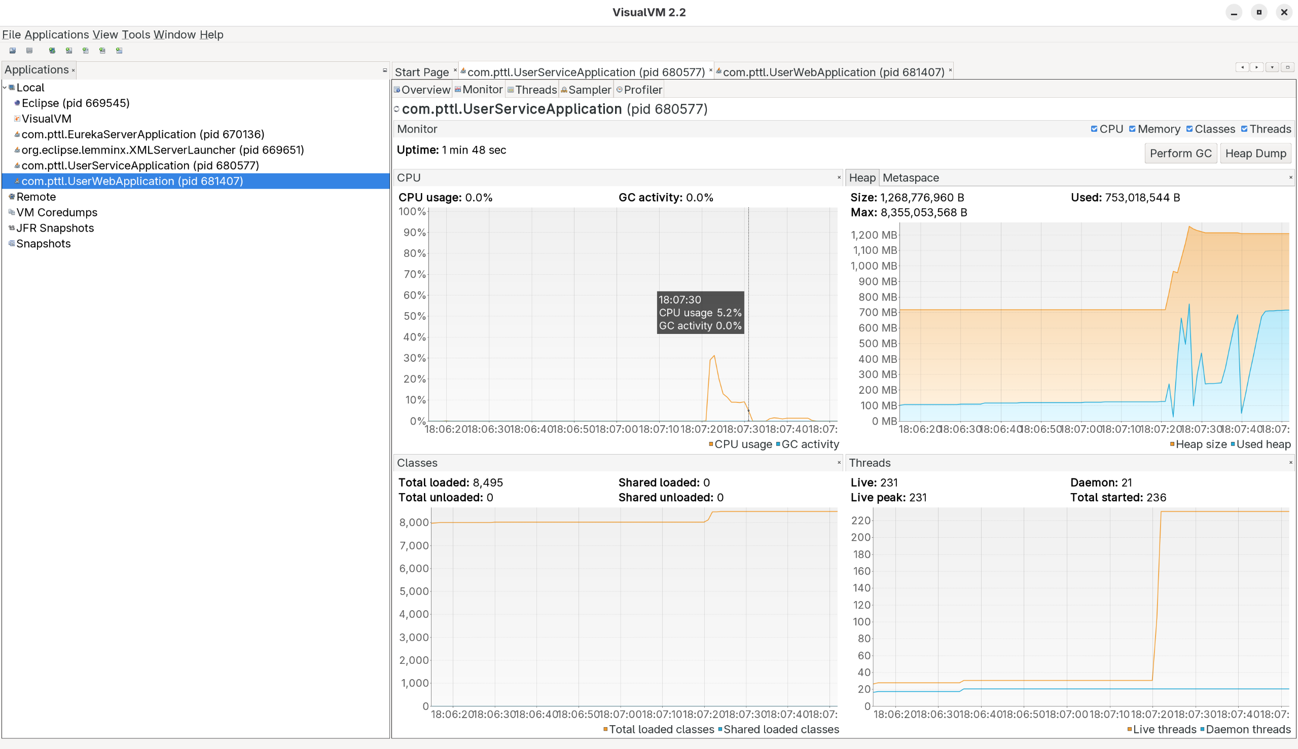 基于上图可以看到 用户服务已启动 启动用时 253ms。
